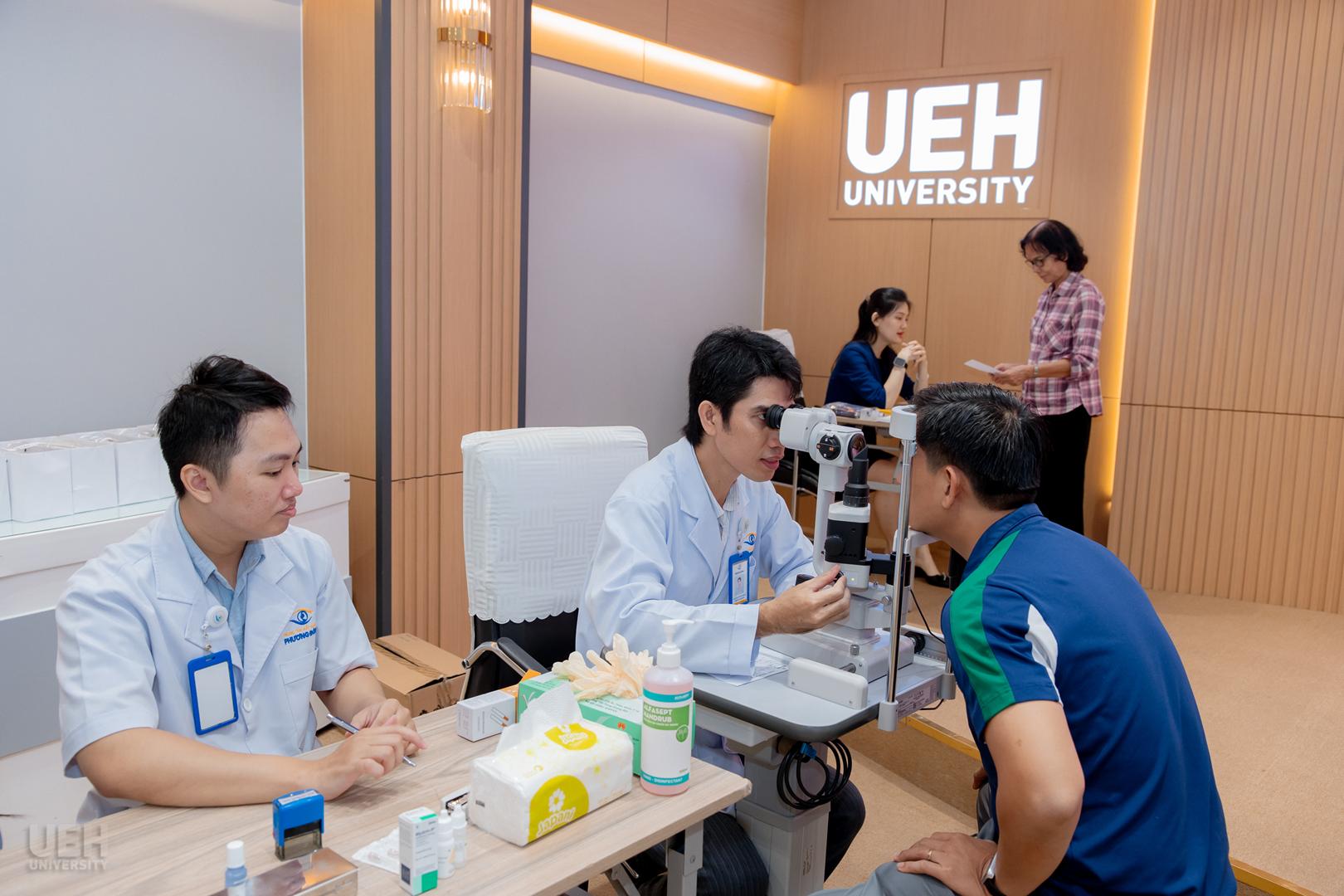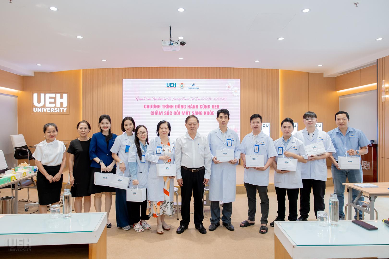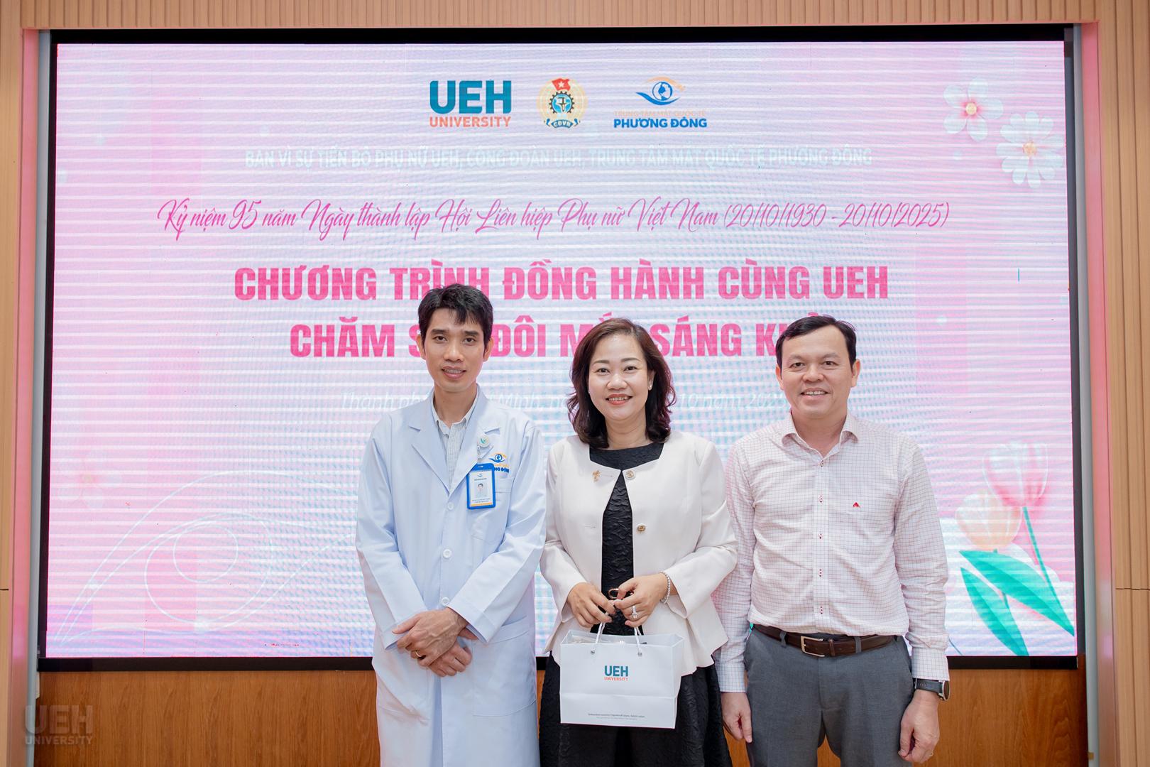 Trong khuôn khổ các hoạt động chào mừng kỷ niệm 95 năm Ngày thành lập Hội Liên hiệp phụ nữ Việt Nam (20/10/1930 – 20/10/2025), sáng ngày 23/10/2025 tại Cơ sở A (59C Nguyễn Đình Chiểu, Phường Xuân Hòa), Ban Vì sự tiến bộ phụ nữ và Công đoàn Đại học Kinh tế Thành phố Hồ Chí Minh (UEH) đã phối hợp cùng Trung tâm Mắt Quốc tế Phương Đông tổ chức thành công Chương trình “Đồng hành cùng UEH chăm sóc đôi mắt sáng khỏe”. Đây là năm thứ ba liên tiếp chương trình ý nghĩa này được tổ chức, bắt đầu từ năm 2023, khẳng định tính bền vững trong cam kết chăm sóc sức khỏe cho viên chức, người lao động và người học của UEH. Chương trình năm nay đã thu hút sự tham gia đông đảo của hơn 200 người tham gia.