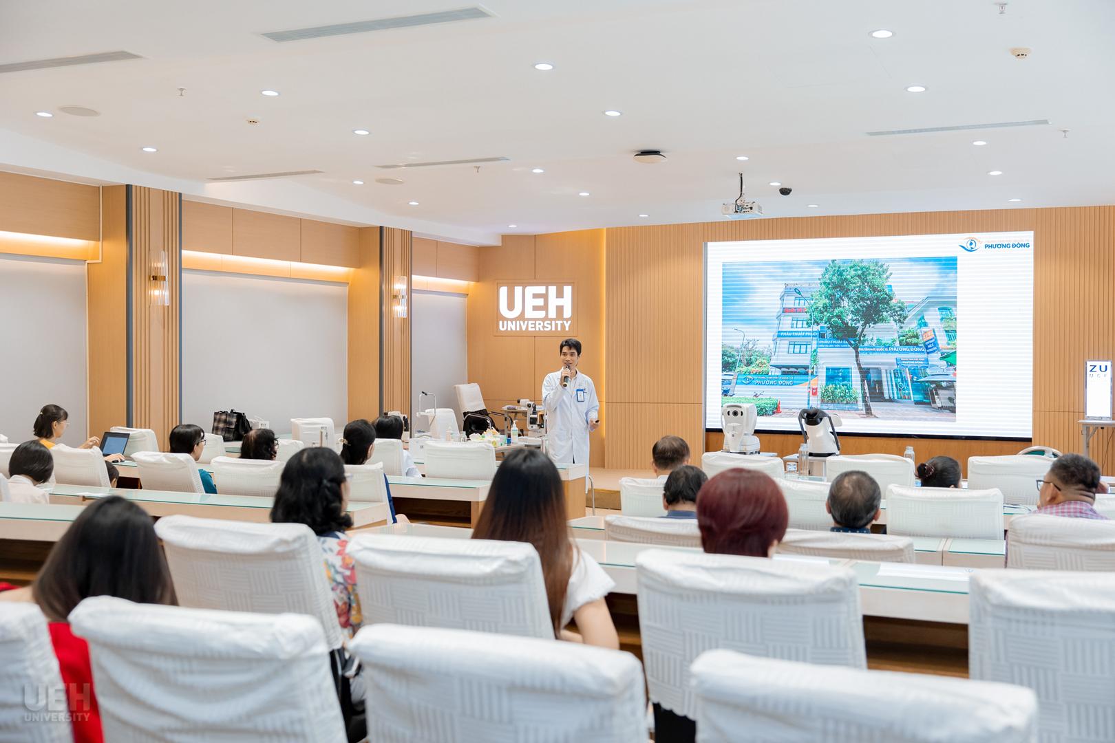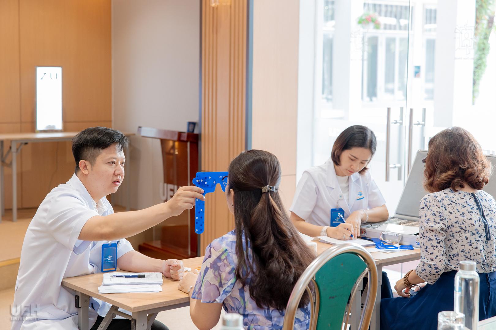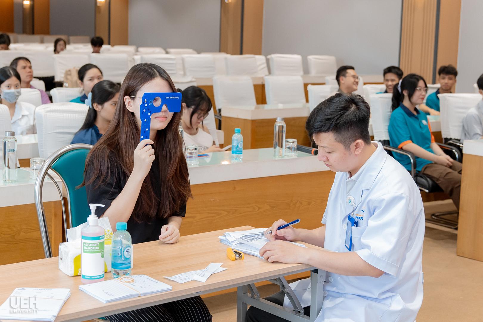 Trong khuôn khổ các hoạt động chào mừng kỷ niệm 95 năm Ngày thành lập Hội Liên hiệp phụ nữ Việt Nam (20/10/1930 – 20/10/2025), sáng ngày 23/10/2025 tại Cơ sở A (59C Nguyễn Đình Chiểu, Phường Xuân Hòa), Ban Vì sự tiến bộ phụ nữ và Công đoàn Đại học Kinh tế Thành phố Hồ Chí Minh (UEH) đã phối hợp cùng Trung tâm Mắt Quốc tế Phương Đông tổ chức thành công Chương trình “Đồng hành cùng UEH chăm sóc đôi mắt sáng khỏe”. Đây là năm thứ ba liên tiếp chương trình ý nghĩa này được tổ chức, bắt đầu từ năm 2023, khẳng định tính bền vững trong cam kết chăm sóc sức khỏe cho viên chức, người lao động và người học của UEH. Chương trình năm nay đã thu hút sự tham gia đông đảo của hơn 200 người tham gia.