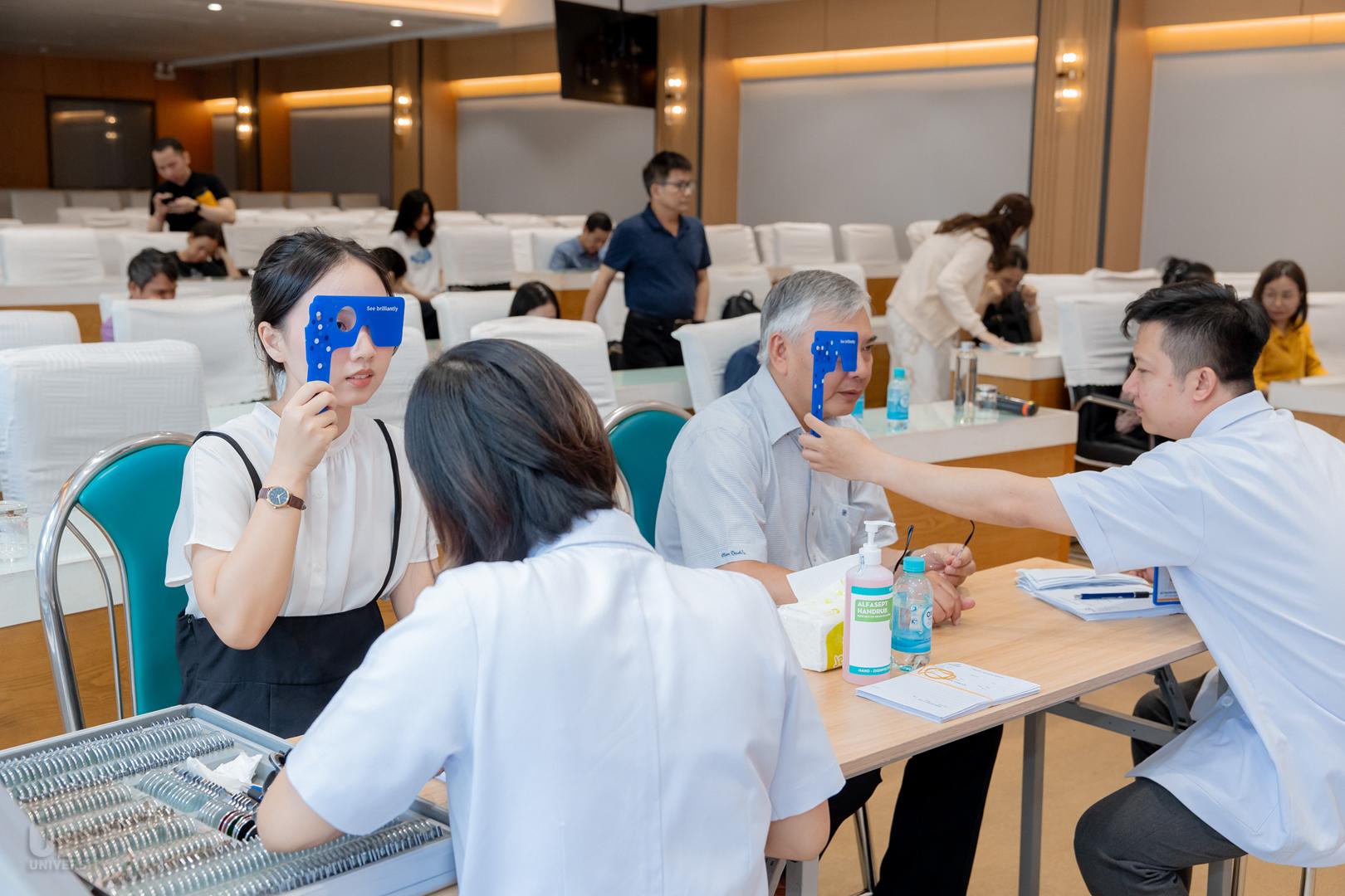 Ngay sau phần báo cáo, toàn thể người tham dự đã được trải nghiệm các dịch vụ thăm khám và tư vấn mắt chuyên sâu, hoàn toàn miễn phí. Tại phòng khám lưu động được bố trí tại Phòng A.103, Cơ sở 59C Nguyễn Đình Chiểu, đội ngũ y bác sĩ và kỹ thuật viên giàu kinh nghiệm của Trung tâm Mắt Quốc tế Phương Đông đã tận tình thực hiện các hạng mục: khám mắt tổng quát trên máy sinh hiển vi, đo thị lực, đo khúc xạ, chụp hình màu đáy mắt trên máy FO và tư vấn các vấn đề liên quan.