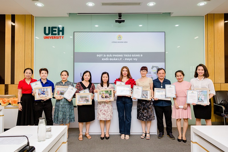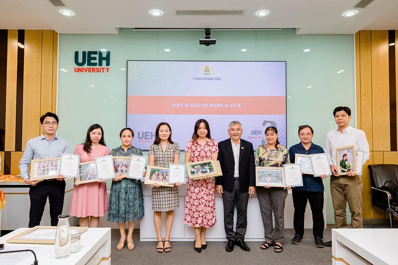 Tham dự Lễ trao giải có TS. Nguyễn Thiện Duy – Uỷ viên Ban Thường vụ Đảng uỷ, phụ trách công tác tuyên giáo; TS. Bùi Quang Việt – Chủ tịch Công đoàn UEH, PGS.TS. Trần Tiến Khai – Phó Chủ tịch Công đoàn UEH; cùng các đồng chí Uỷ viên BCH Công đoàn UEH, thành viên Ban tổ chức và các đơn vị có tác phẩm dự thi đoạt giải.