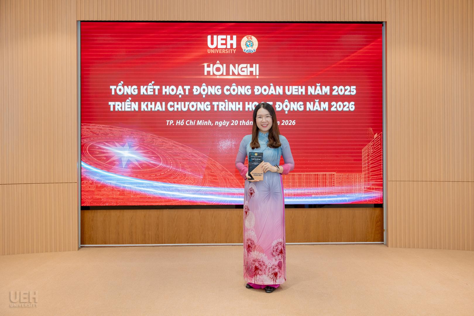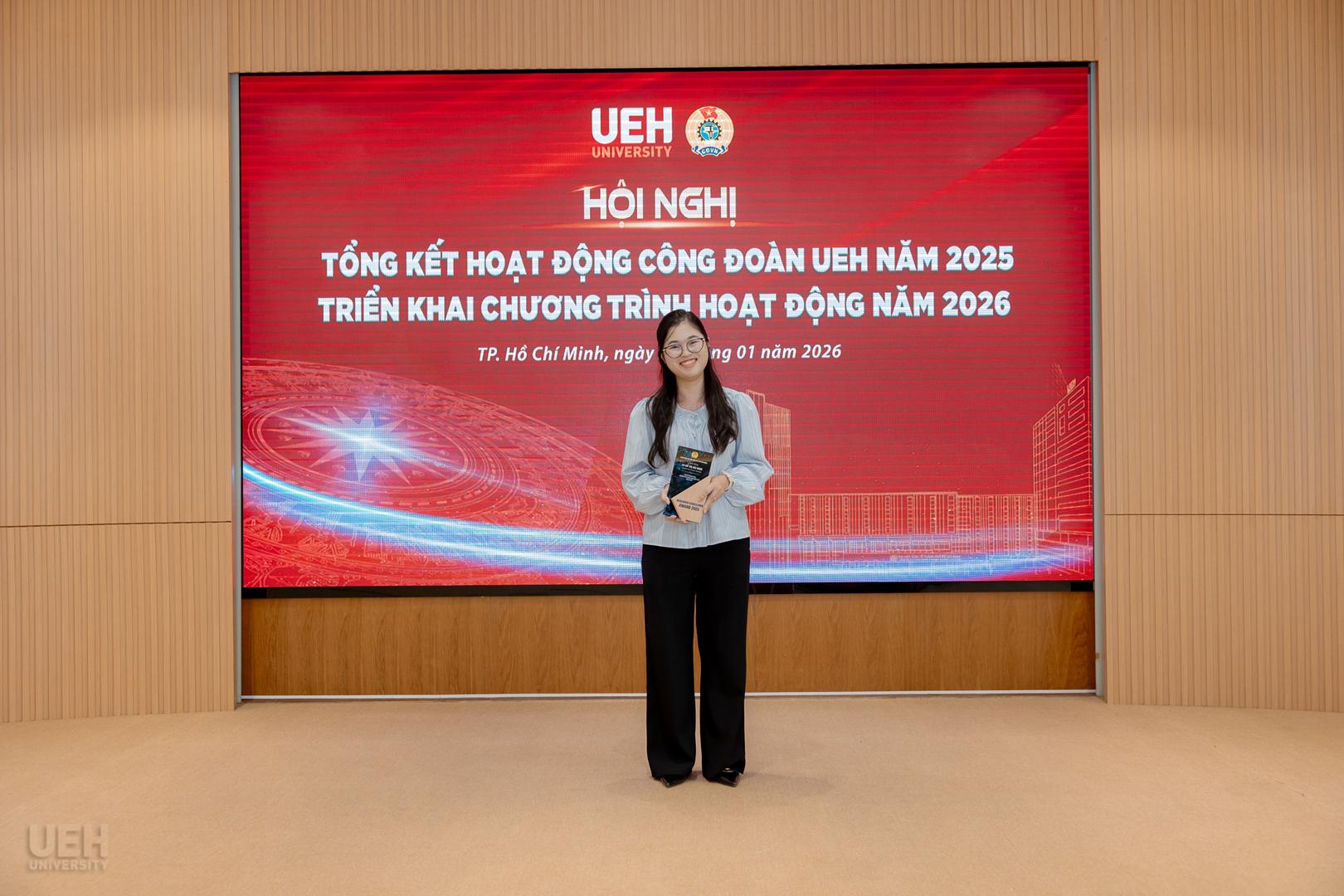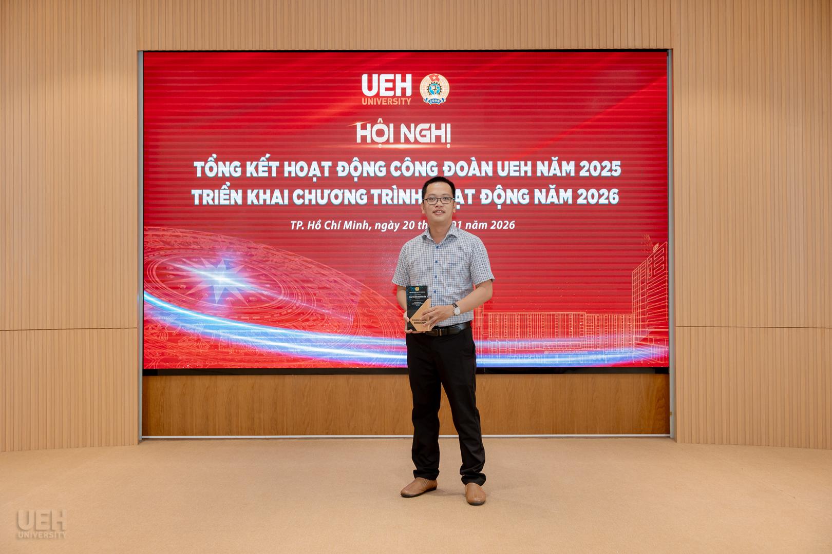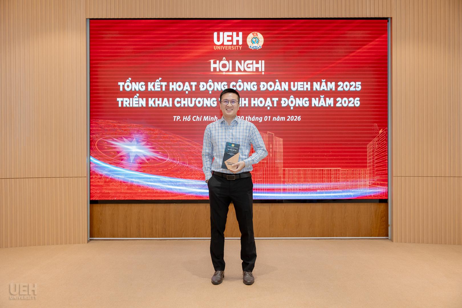 Đặc biệt, Công đoàn UEH chú trọng nâng cao năng lực đội ngũ thông qua các cơ chế hỗ trợ kinh phí thiết thực, khuyến khích viên chức, người lao động (VCNLĐ) tích cực tham gia nghiên cứu khoa học. Trong năm, Công đoàn đã đăng cai tổ chức thành công Tọa đàm “Vai trò của Công đoàn trong thúc đẩy hoạt động nghiên cứu khoa học” trong khuôn khổ Khối thi đua số 2, tạo diễn đàn kết nối và chia sẻ kinh nghiệm học thuật giữa các đơn vị. Nhằm kịp thời ghi nhận những nỗ lực sáng tạo đó, đây cũng là lần đầu tiên Công đoàn UEH triển khai xét tuyên dương cá nhân có thành tích nghiên cứu khoa học xuất sắc.
