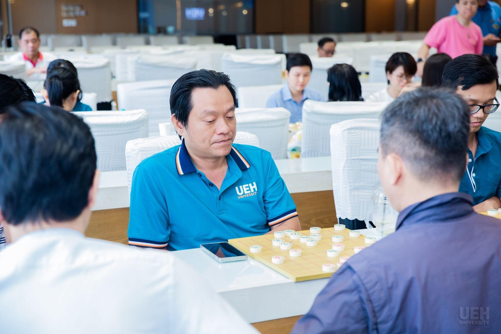 Các vận động viên tranh tài tại các bộ môn cờ tướng, bóng bàn, pickleball và bóng đá của Hội thao